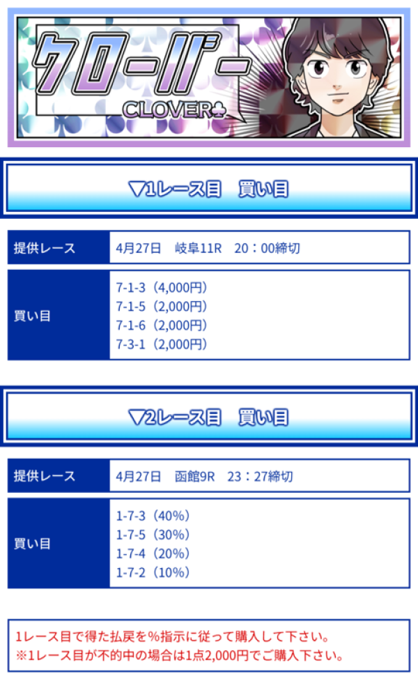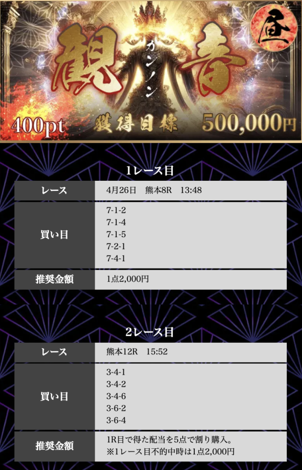 | 無料予想 | 12レース分の回収率が208% |