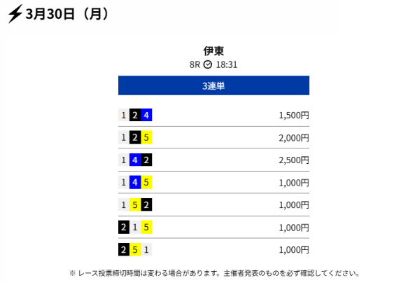 ストライク配当のナイターで約60万円の払い戻しになりました。
