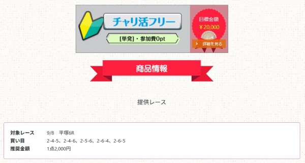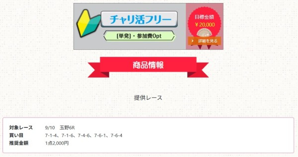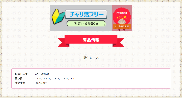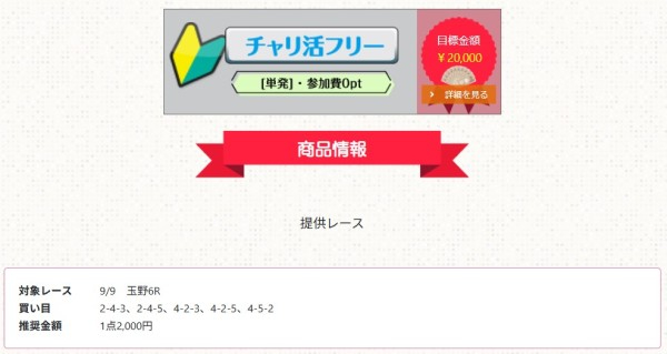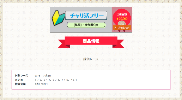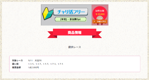 競輪チャリ活の有料情報は、情報料が高くなるほど、目標金額も高くなっていました。