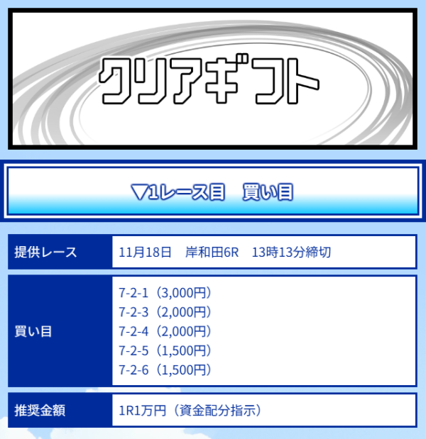 次に、クリアレーサーの無料予想は、2025年11月中旬の10レース分で回収率81%でした。