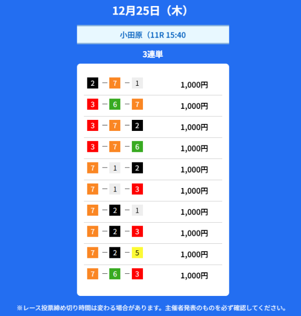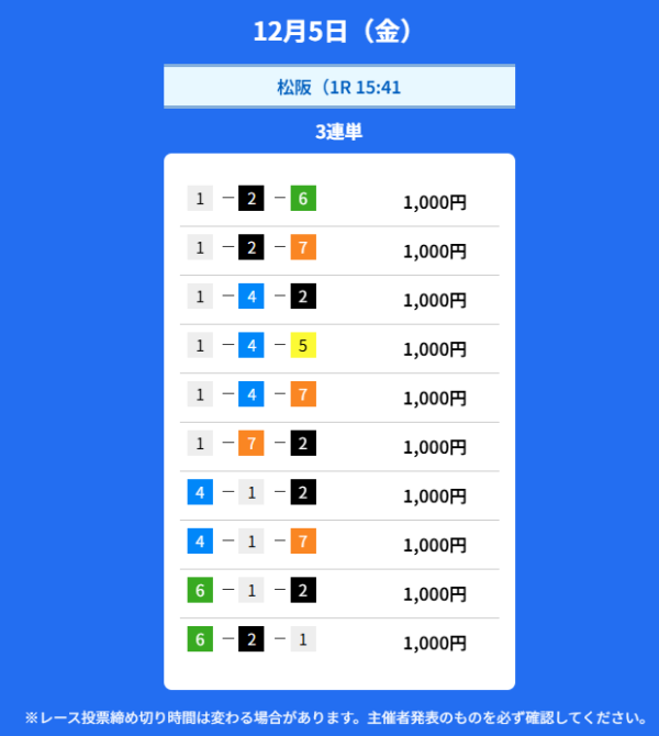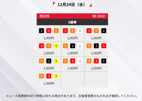 買い目の公開頻度がかなり高いですね。