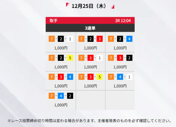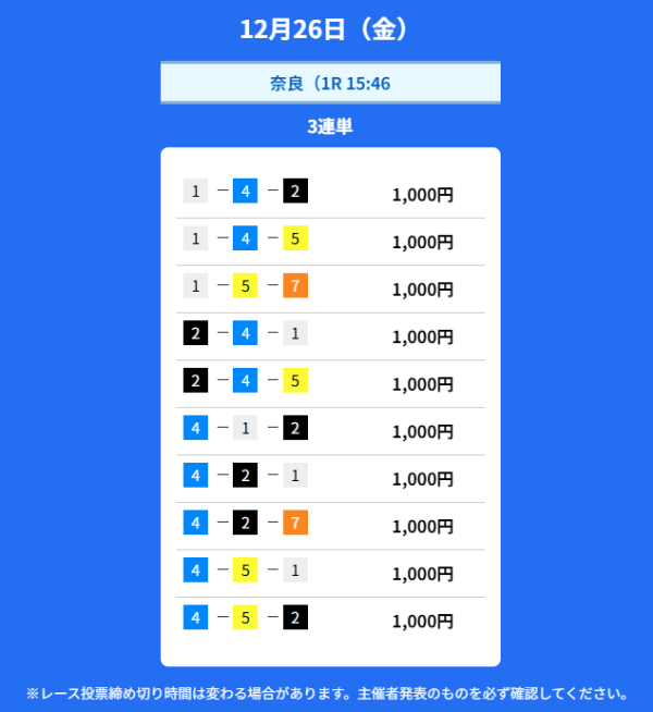 | 12月25日 | 夜 | 10,000円 | 4,700円 | 4.7倍 | 買い目を見る |