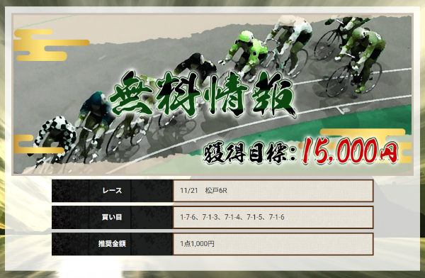 競輪の還元率は75%なので、競輪神風の無料予想の回収率74%は平均的な数値です。