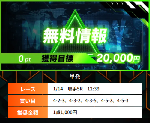 | 1月14日 | 5,000円 | 0円 | 不的中 | 4-2-3、4-35-235 |