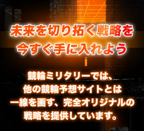 競輪ミリタリー(競輪MILITARY)とは「勝利を持ち込む戦略」を掲げる予想サイトです。