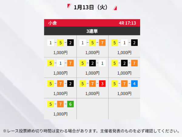 | 無料予想 | 1月13日 | 33,900円 | 339% | 33.9倍 | 画像 |