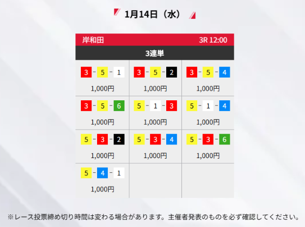 2レース目が不的中だと払戻金は0円ですが、少ない予算でも大きな払戻金を狙えますね。