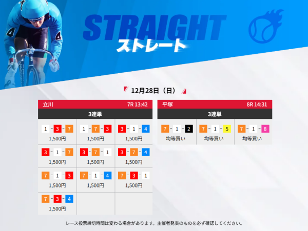競輪ストライクは、1レース目はKドリームスと同じ選手を狙っていました。